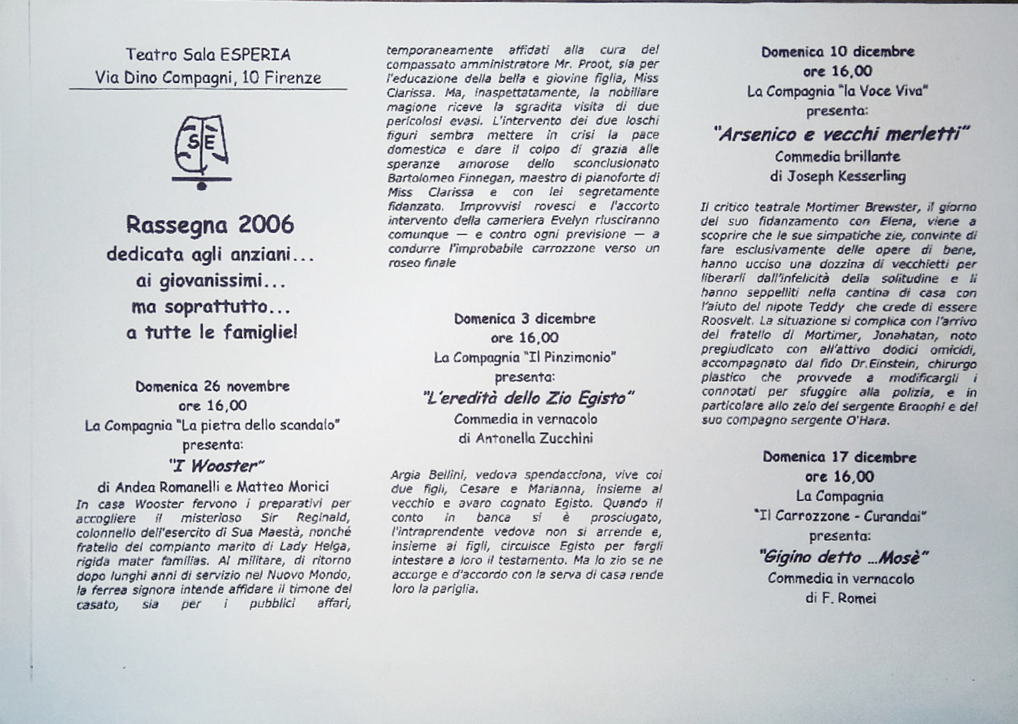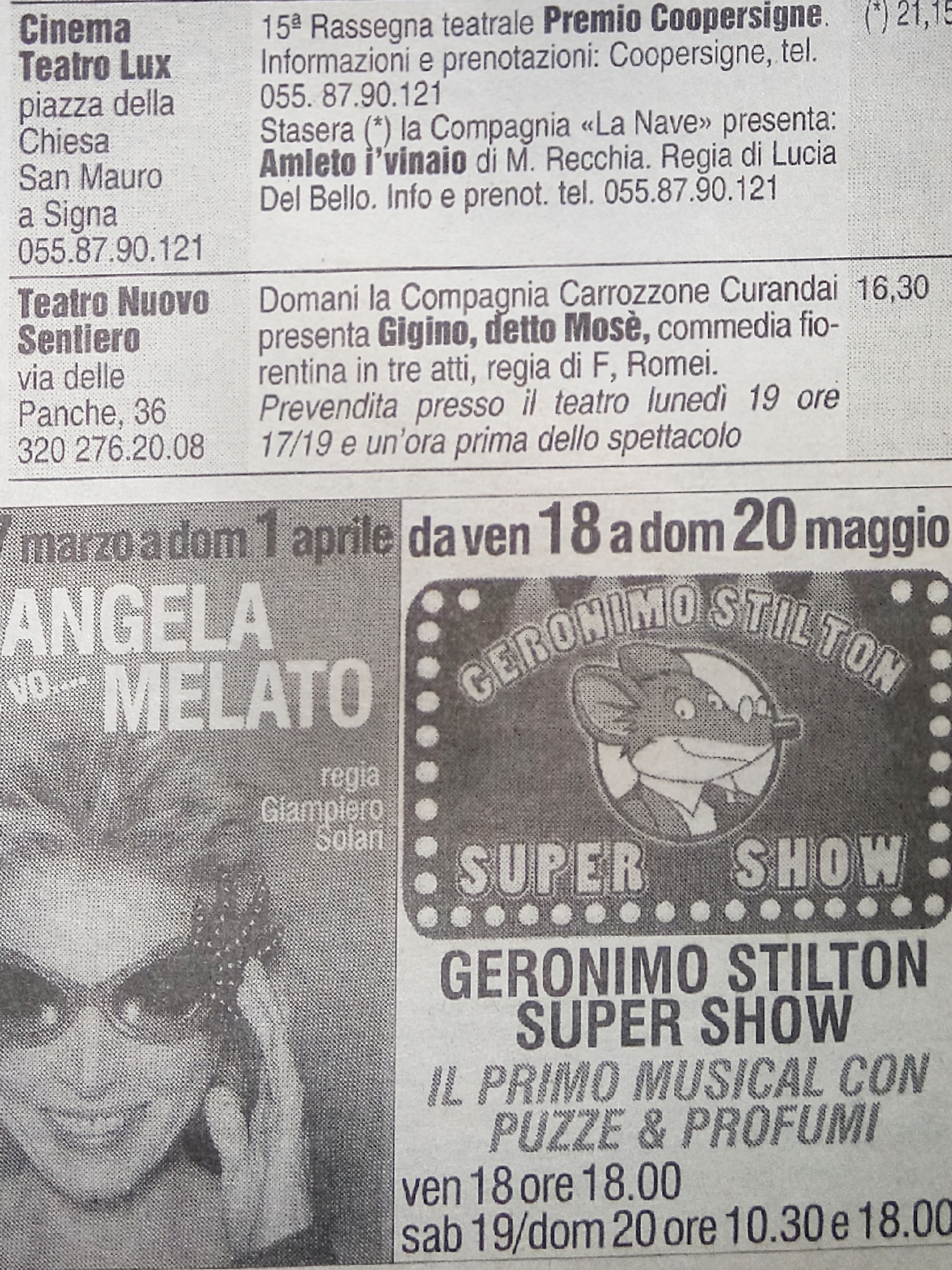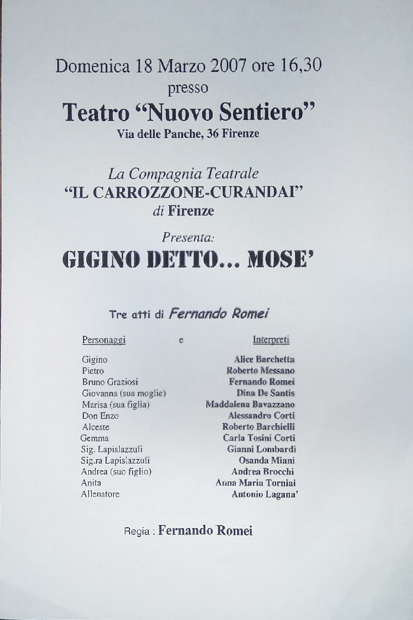 Club Girasole ’98, Premio per il teatro “Firenze alla Ribalta”, II Edizione, La giuria ritiene l’opera “Gigino detto Mosè” del Sig. Fernando Romei meritevole di segnalazione. Firenze, 8 Novembre 2003.
